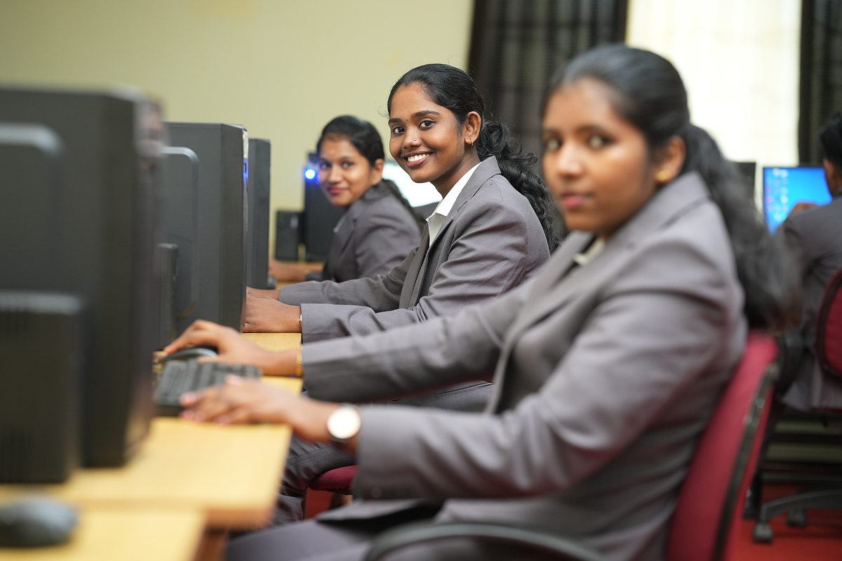 The modern computer lab offers high-speed internet and powerful workstations, providing the perfect environment for research, project work, and developing essential digital skills.