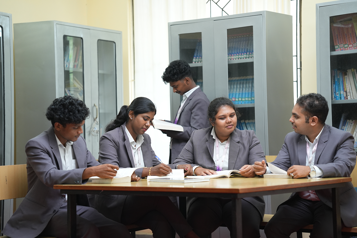 Our well-equipped library serves as a vibrant knowledge center, stocked with textbooks, case studies, and reference materials across general management and specialized subjects. It also supports skill-building and group learning, featuring quiet reading zones alongside collaborative discussion areas.